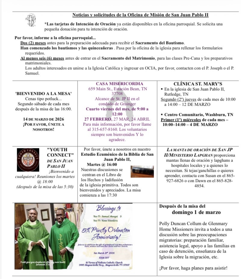 Below you’ll find the bulletin in English, followed by the Spanish version.